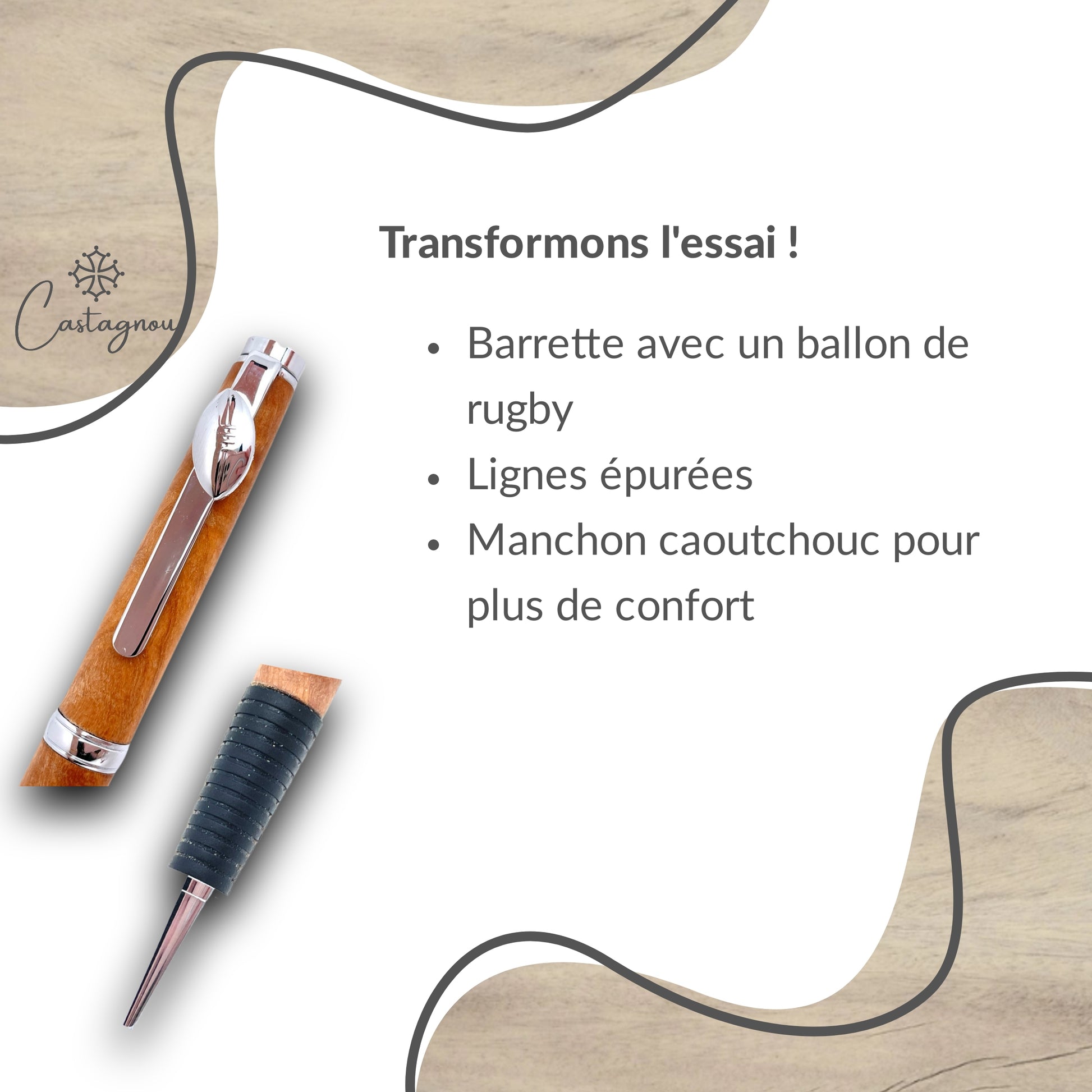 STYLO EN BOIS D'OLIVIER - MODELE RUGBY